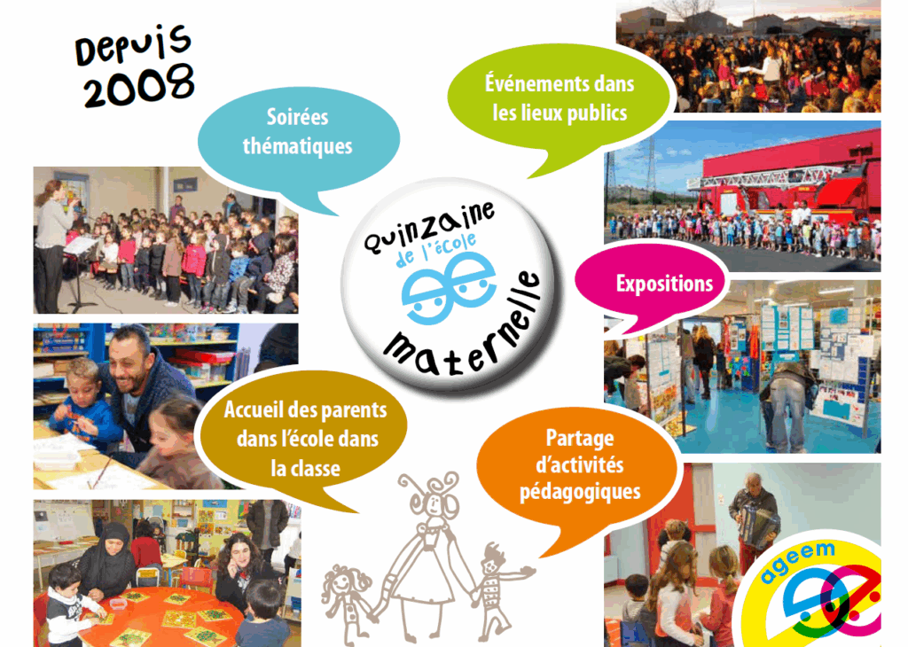 Initiée depuis 2008 par l’AGEEM, cette action nationale a pour objectif de valoriser la pédagogie de l’école maternelle en donnant à voir et à comprendre la spécificité de cet enseignement, en ouvrant les portes des écoles et des classes maternelles aux familles, aux collectivités, aux partenaires par des actions (expositions, classes ouvertes, ateliers parents-enfants, cafés parents…) et des communications.
