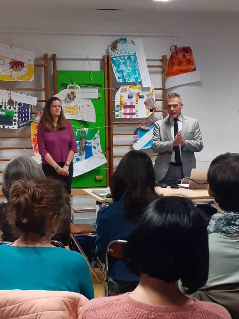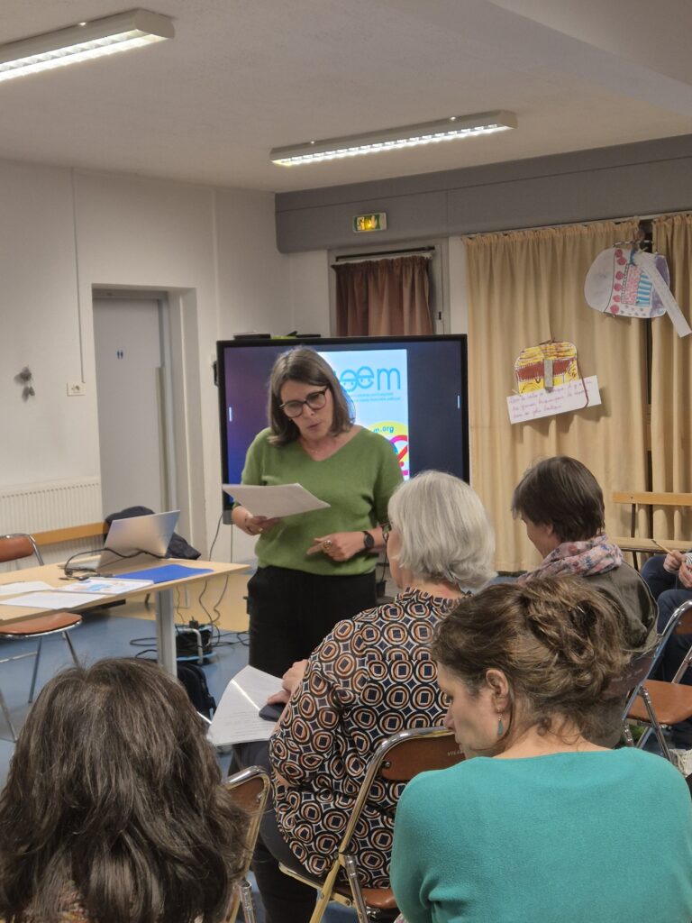 Edith, notre nouvelle déléguée départementale, a présenté les actions à venir. Avec Virginie, notre représentante académique, elles ont questionné l’assemblée sur la Quinzaine de l’Ecole Maternelle.