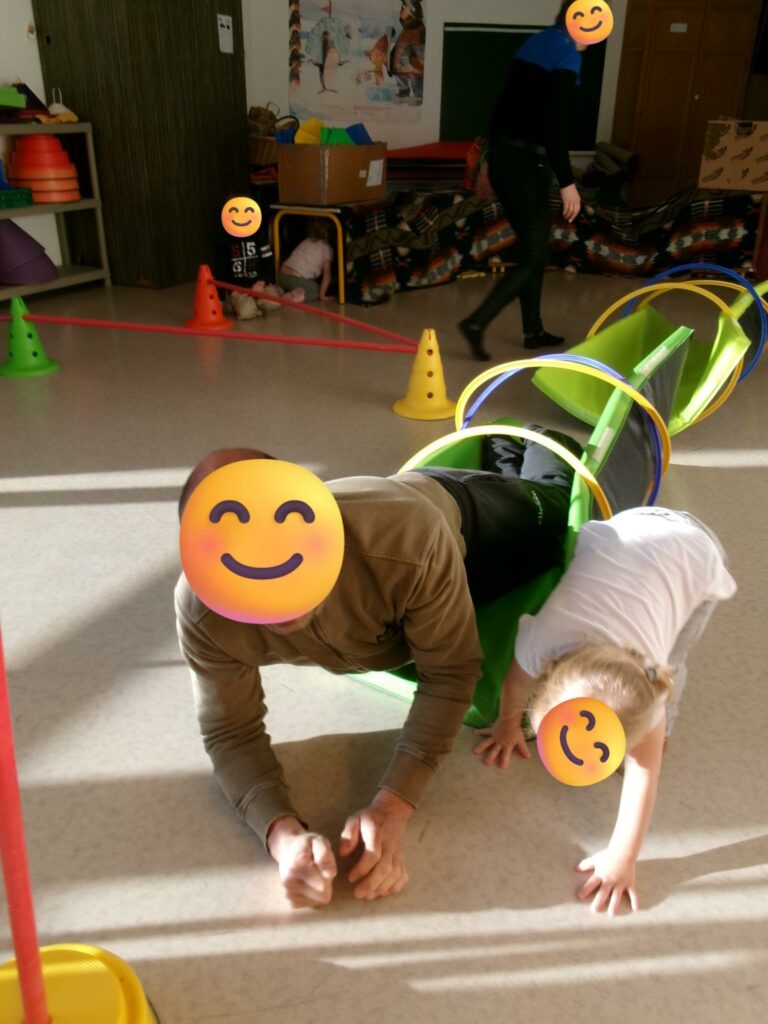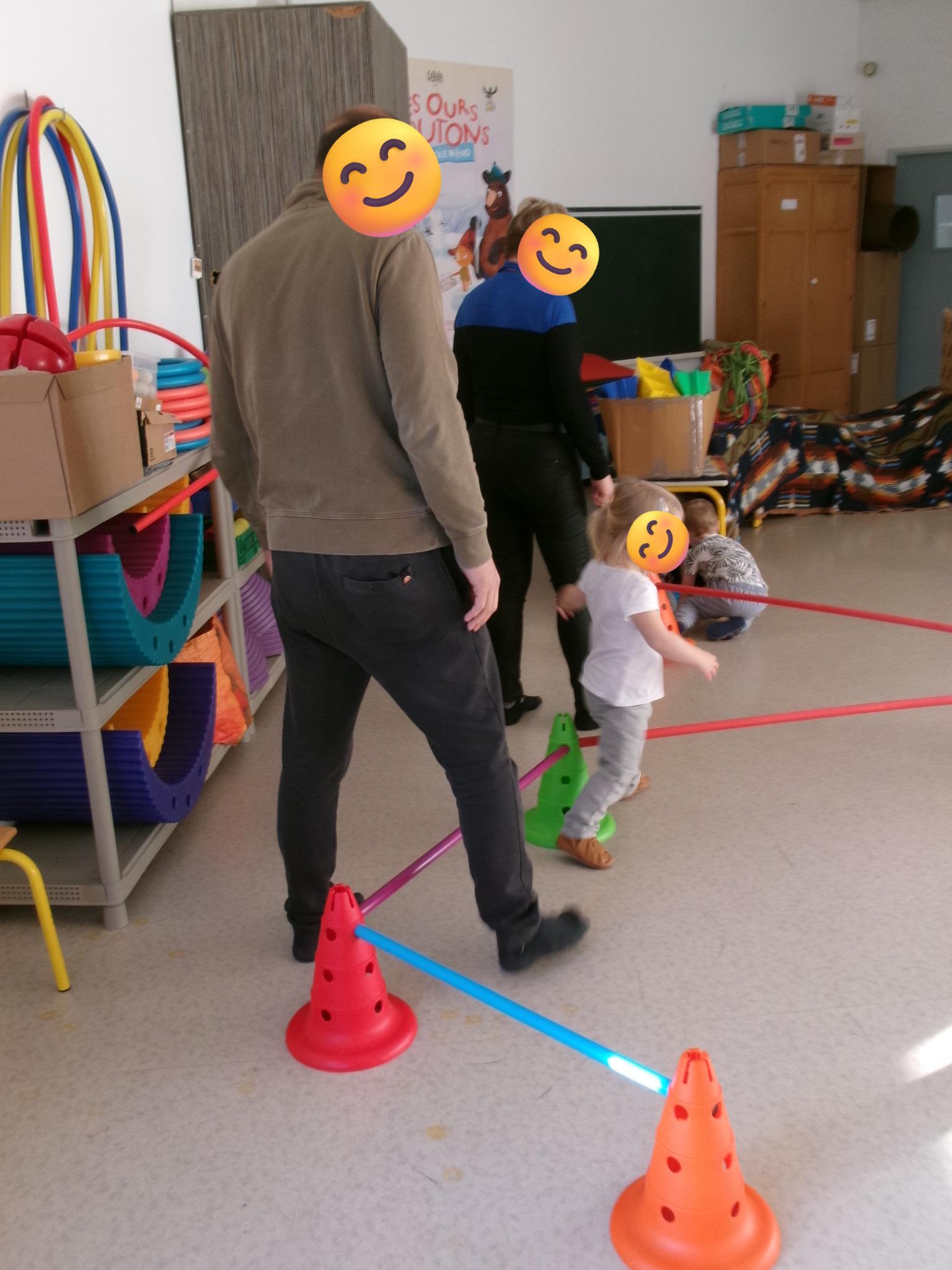 Le parcours peut être l’occasion pour les familles de tester et comprendre les difficultés (équilibre, précision des gestes…) et bien sûr le plaisir pour l’enfant de faire avec son parent.