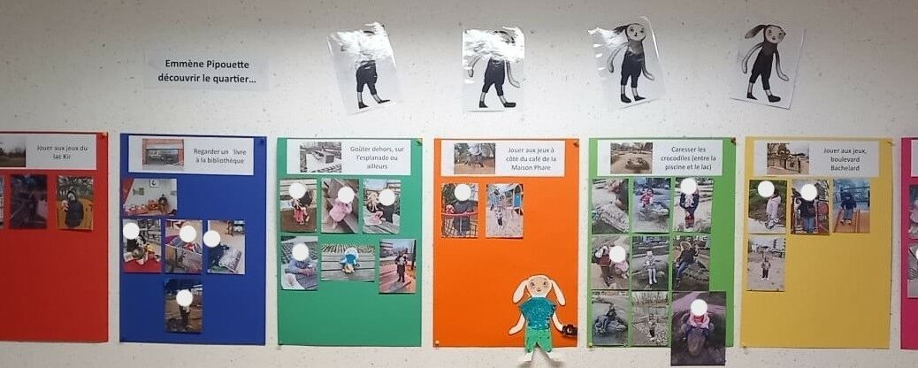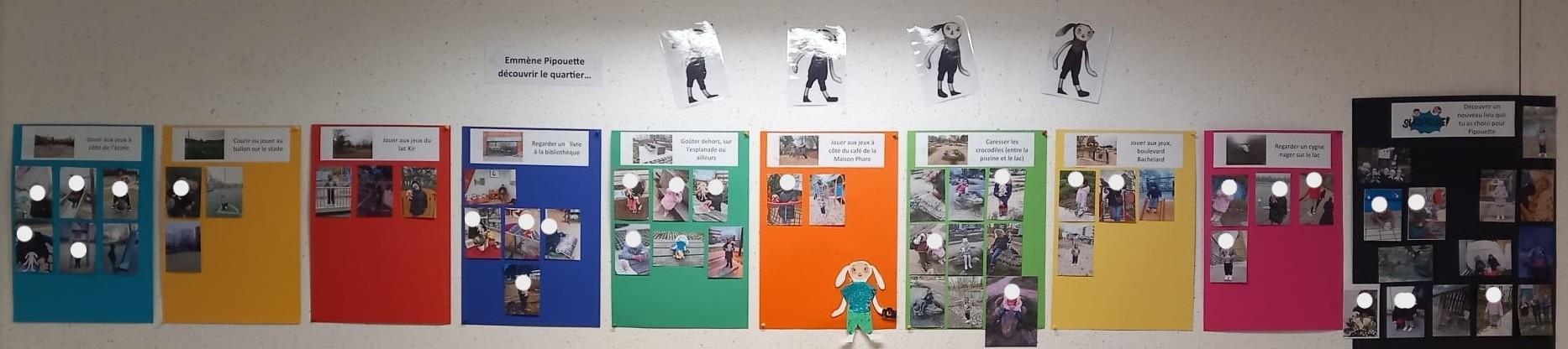 Toutes les photos envoyées de Pipouette dans les différents lieux du quartier étaient affichées dans l’école au fur et à mesure de leur arrivée.