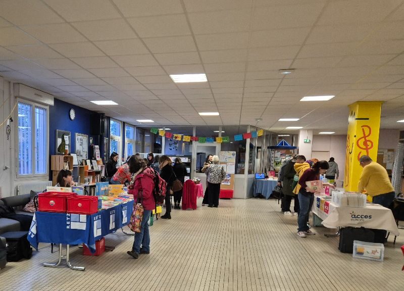 Le salon éducatif a permis de rassembler dans le hall d’accueil plusieurs éditeurs : Accès éditions, le Crocodile Bleu, l‘Ecole des loisirs, Les doigts qui rêvent, Nathan et Retz .