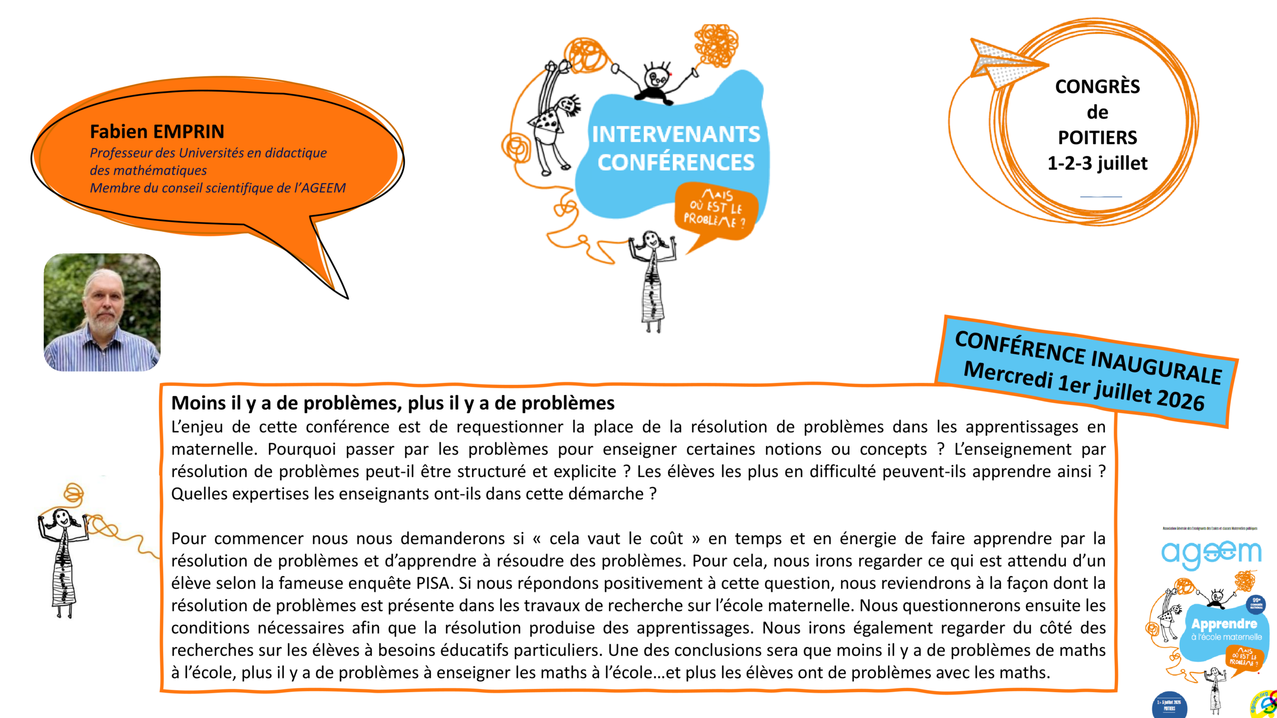 La conférence inaugurale « Moins il y a de de problèmes, plus il y a de problèmes » par Fabien EMPRIN le mercredi 1er juillet
