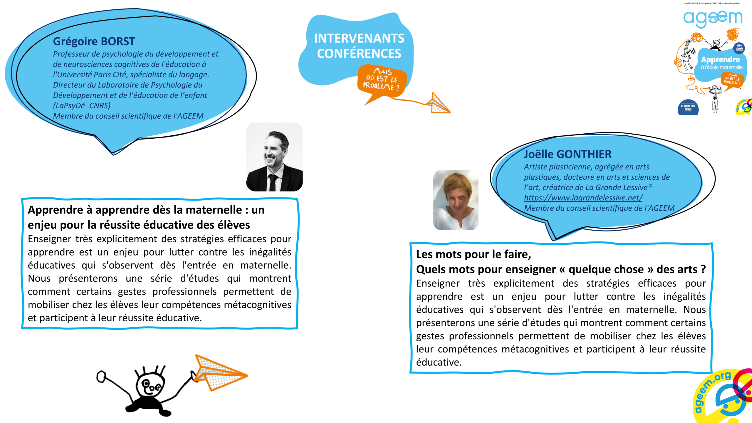 « Apprendre à apprendre dès la maternelle : un enjeu pour la réussite éducative » par Grégoire Borst « Les mots pour le faire, quels mots pour enseigner « quelque chose » des arts? » par Joëlle Gonthier