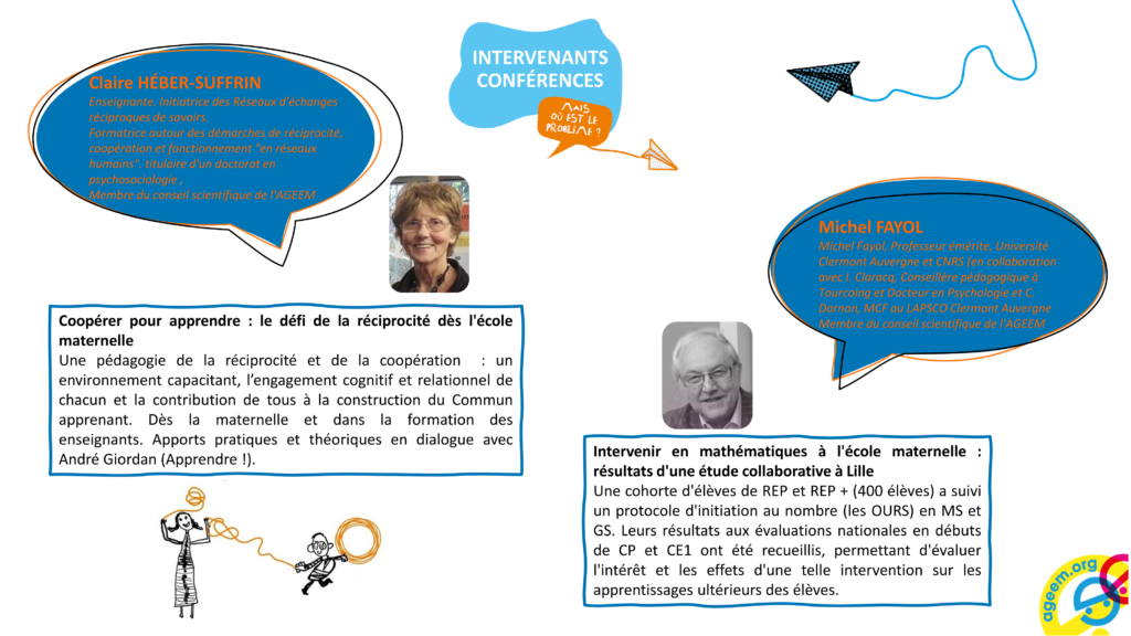 « Coopérer pour apprendre : le défi de la réciprocité dès l’école maternelle » par Claire Héber-Suffrin « Intervenir en mathématiques à l’école maternelle : résultats d’une étude collaborative à Lille » par Michel Fayol