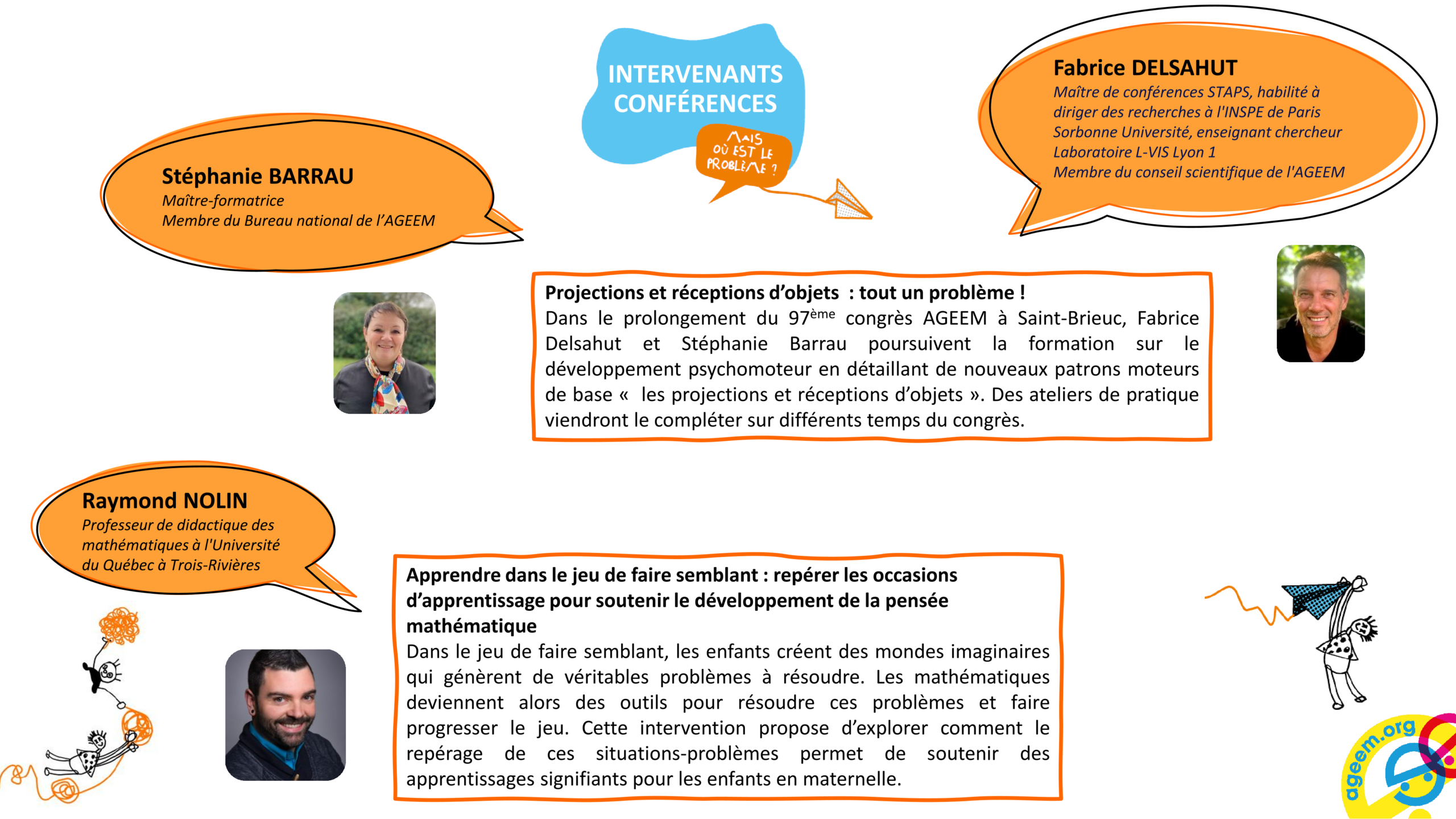 « Projections et réceptions d’objets: tout un problème » par Fabrice Delsahut et Stéphanie Barrau « Apprendre dans le jeu de faire semblant : repérer les occasions d’apprentissage pour soutenir le développement de la pensée mathématique » par Raymond Nolin